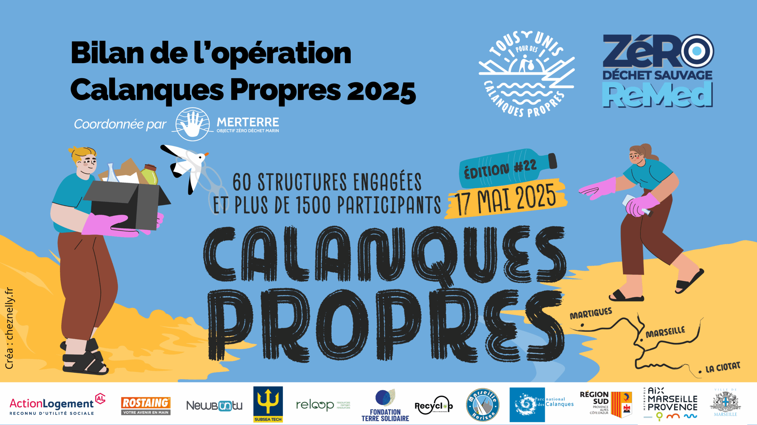 Calanques Propres est une opération annuelle de nettoyage citoyen du littoral méditerranéen, portée par l’association MerTerre.