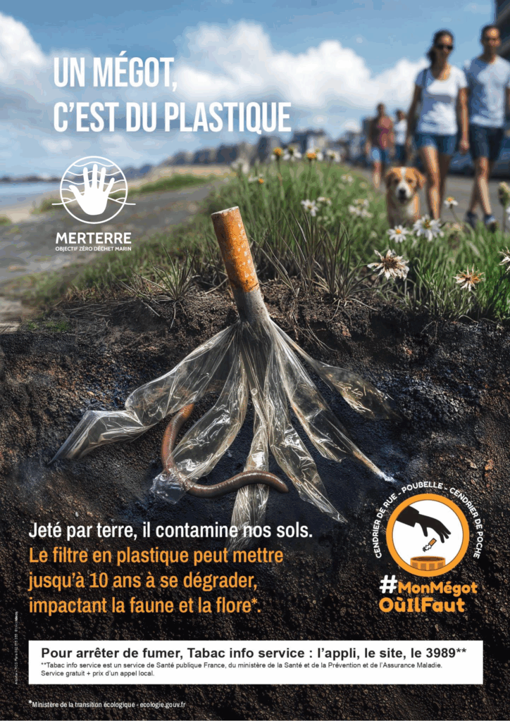 Cette campagne rappelle une réalité méconnue : le filtre d’un mégot n’est pas du coton, mais du plastique. Jeté au sol, il met jusqu’à 10 ans à se dégrader, libérant au passage des substances toxiques qui contaminent durablement les sols, les cours d’eau, la mer et l’océan.